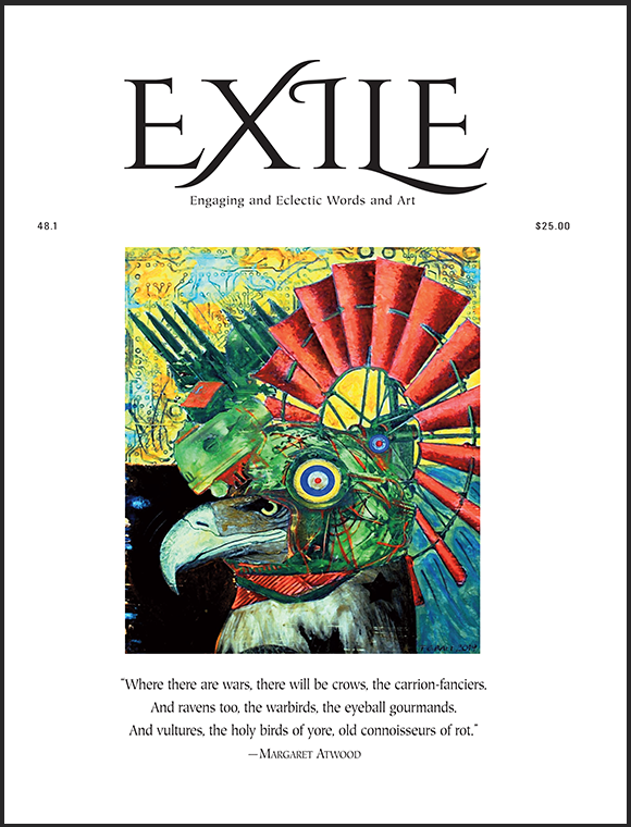 • To order an issue for delivery outside Canada or the U.S., please email exq@exilequarterly.com (we must apply the additional Canada Post cost of $25-plus per issue – and so we will follow up on your request. Payment to be made by PayPal upon receiving an invoice from us).